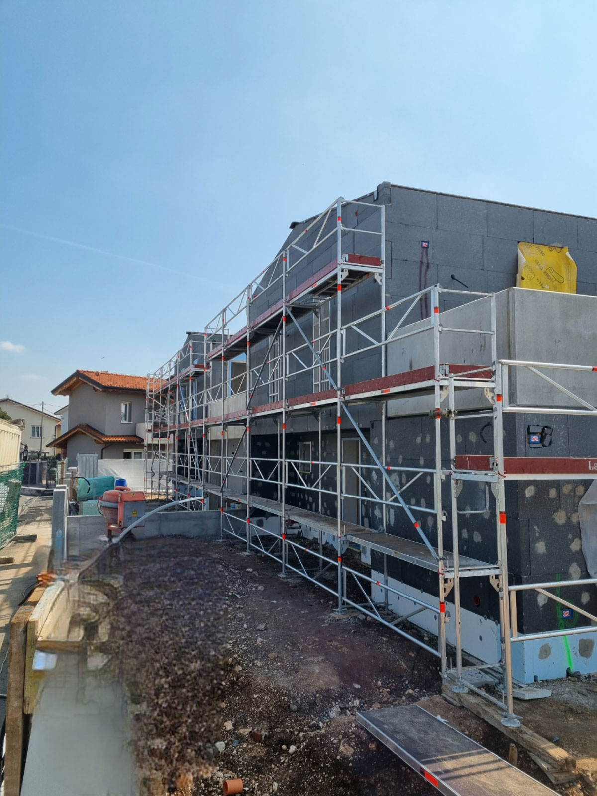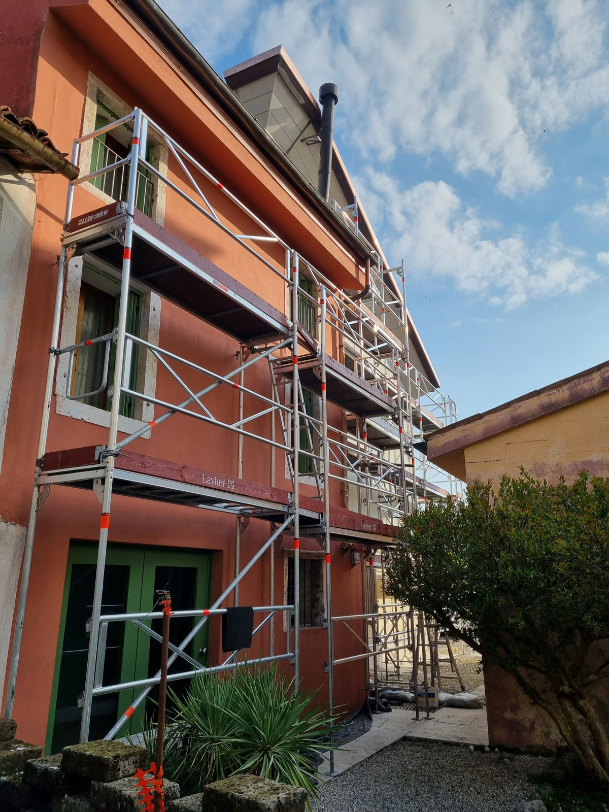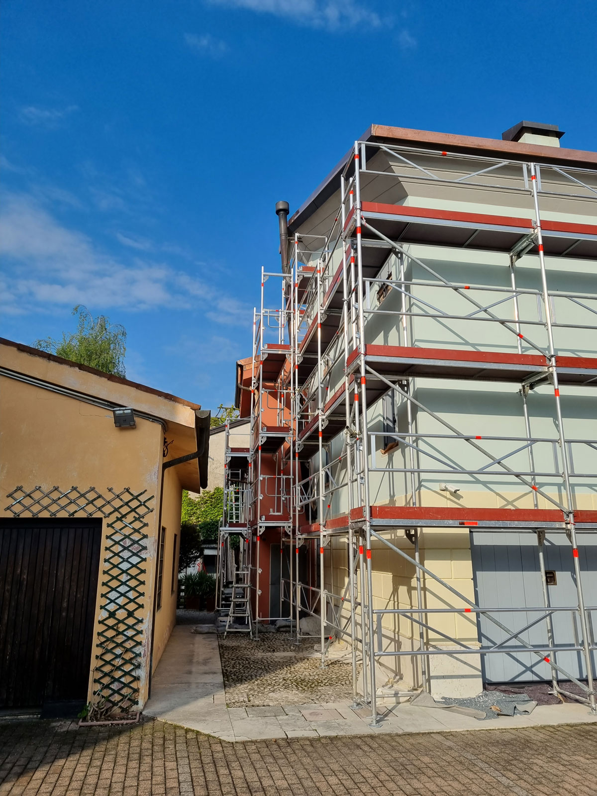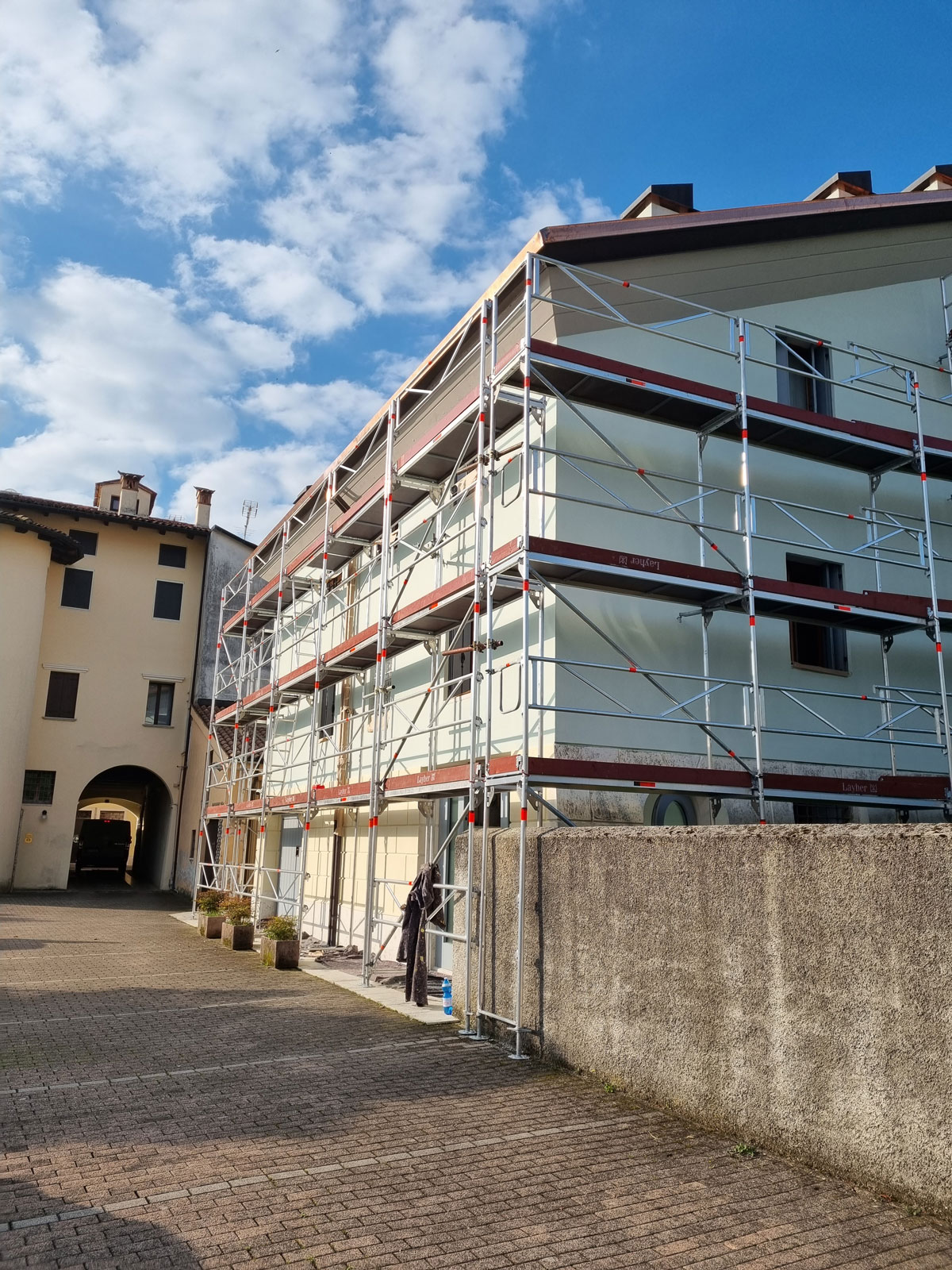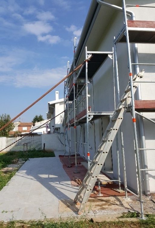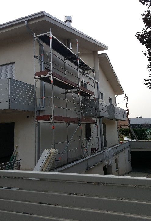 Fornitura noleggio con servizio di consegna e posa di ponteggio a telai prefabbricati in alluminio layher blitz passo 2,57 x 0,73, per lavorazioni di manutenzione di facciate, pittura, cappotti termici.