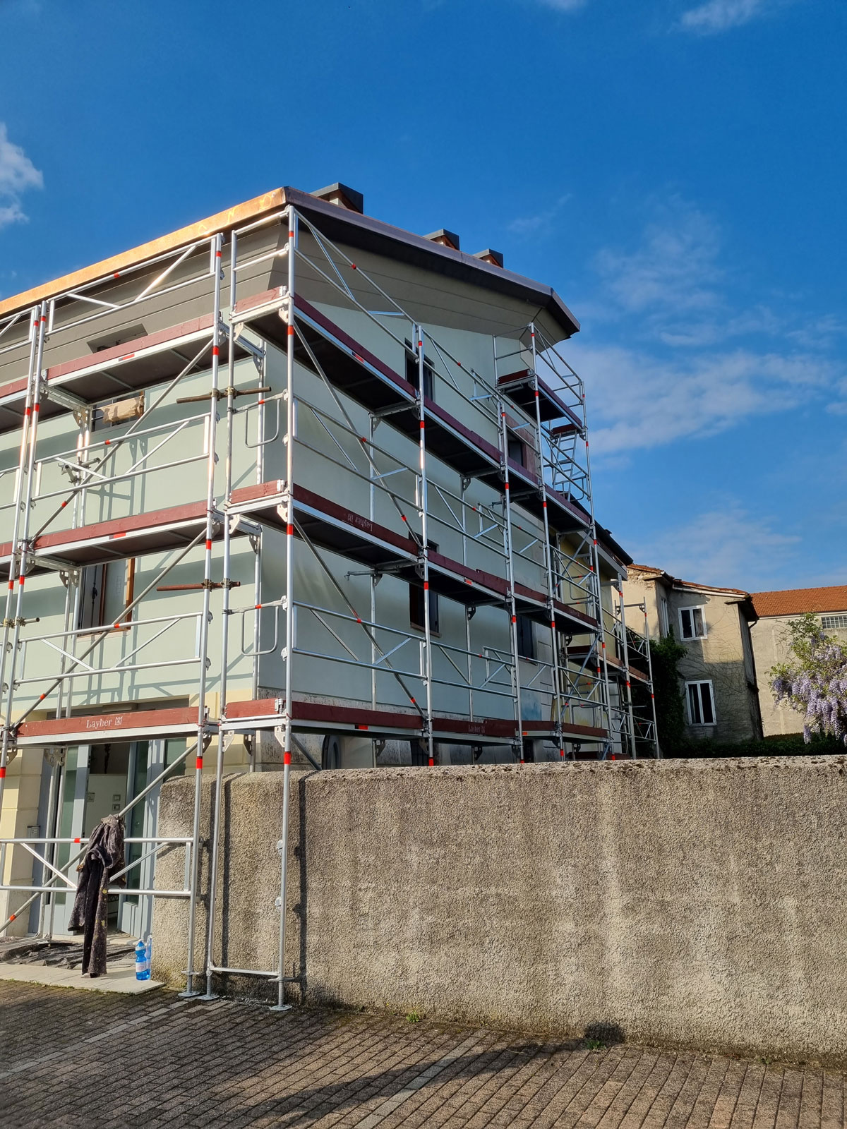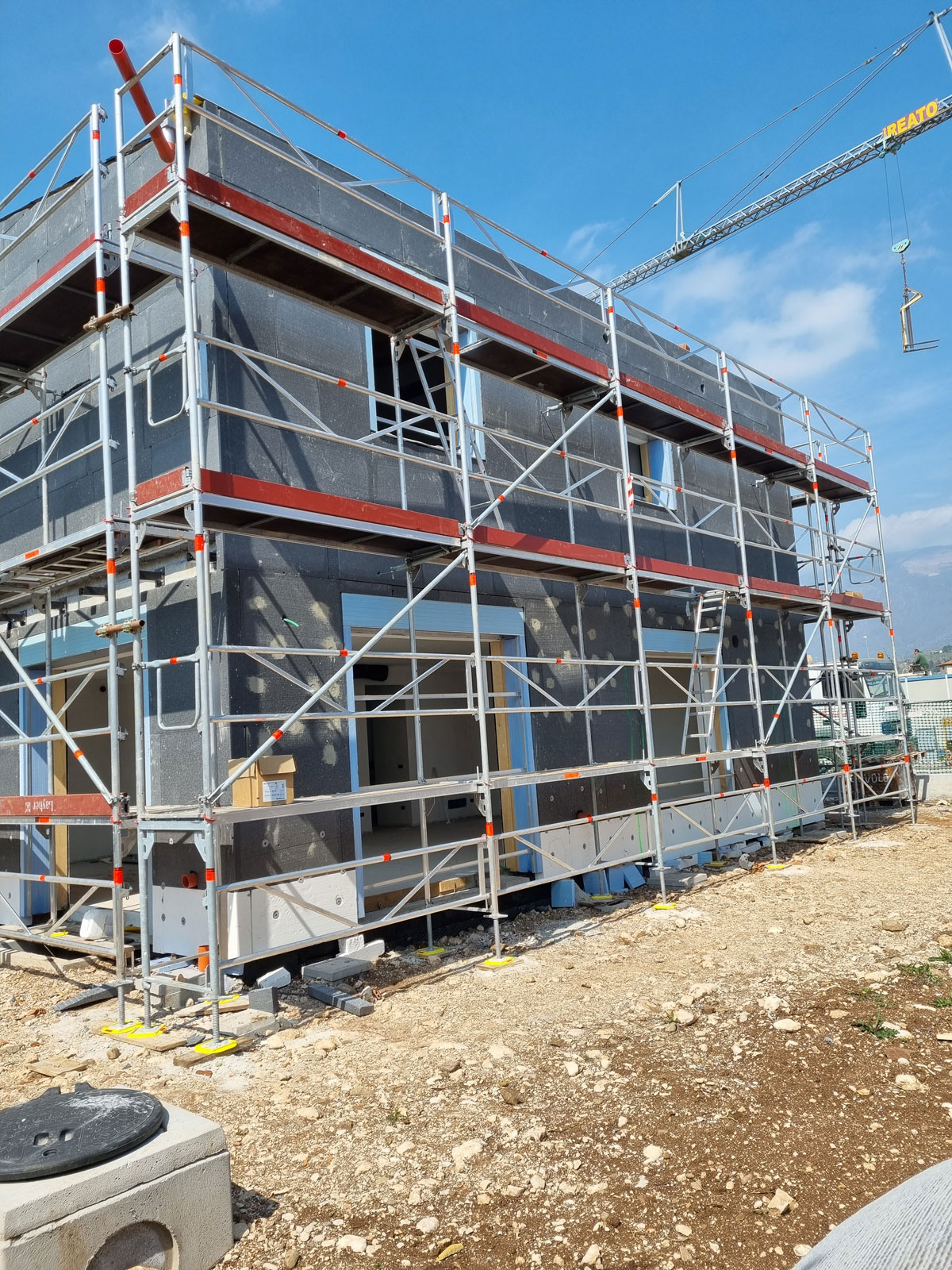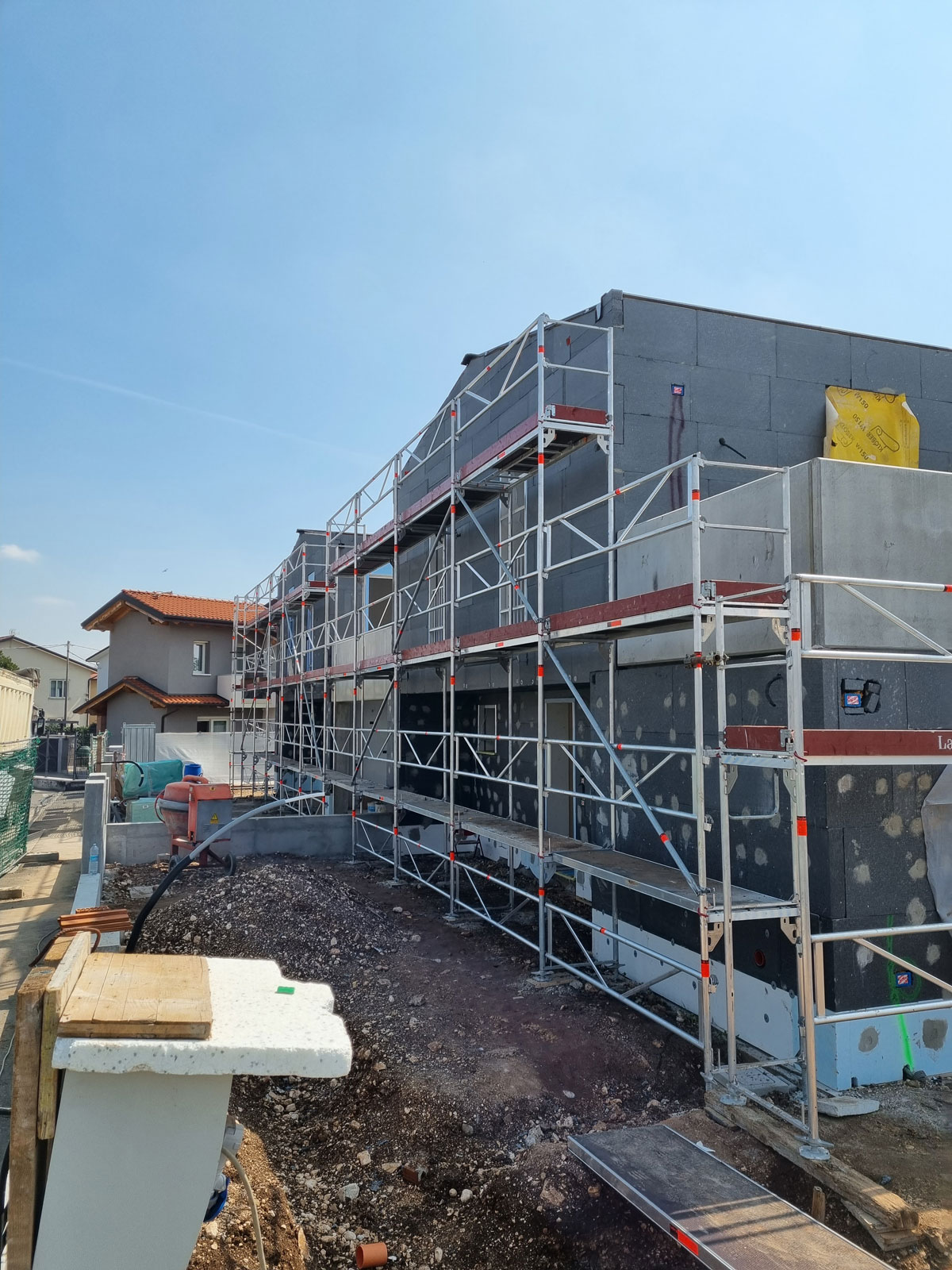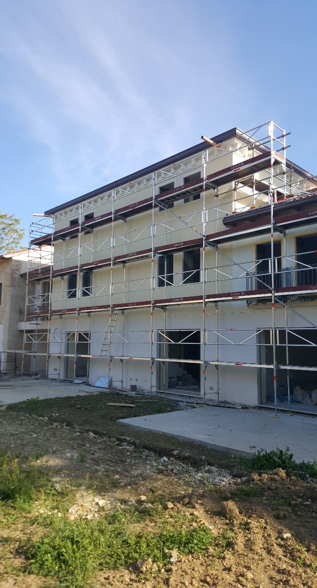 Fornitura noleggio con servizio di consegna e posa di ponteggio a telai prefabbricati in alluminio layher blitz passo 2,57 x 0,73, per lavorazioni di manutenzione di facciate, pittura, cappotti termici.